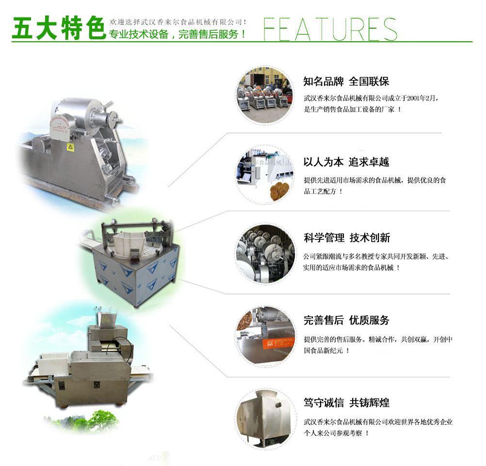 武漢香來爾食品機(jī)械有限公司成立于2001年2月,是生產(chǎn)銷售休閑食品加工設(shè)備的廠家。公司緊跟市場潮流與華工、華農(nóng)多名共同開發(fā)新穎、實用的適應(yīng)市場需求的食品機(jī)械,自有車、刨、鉆、銑、剪板、折彎等先l進(jìn)機(jī)床100多臺 套。7年誠信通會員,產(chǎn)品出口拉美、非洲、東南亞、歐洲等很多國家和地區(qū),國內(nèi)很多食品企業(yè)都是我們的合作伙伴。目前公司專門設(shè)立一個的售后 服務(wù)班子,在公司逐步發(fā)展強(qiáng)大的過程中,一直堅持售后服務(wù)的同步發(fā)展,精良的食品設(shè)...